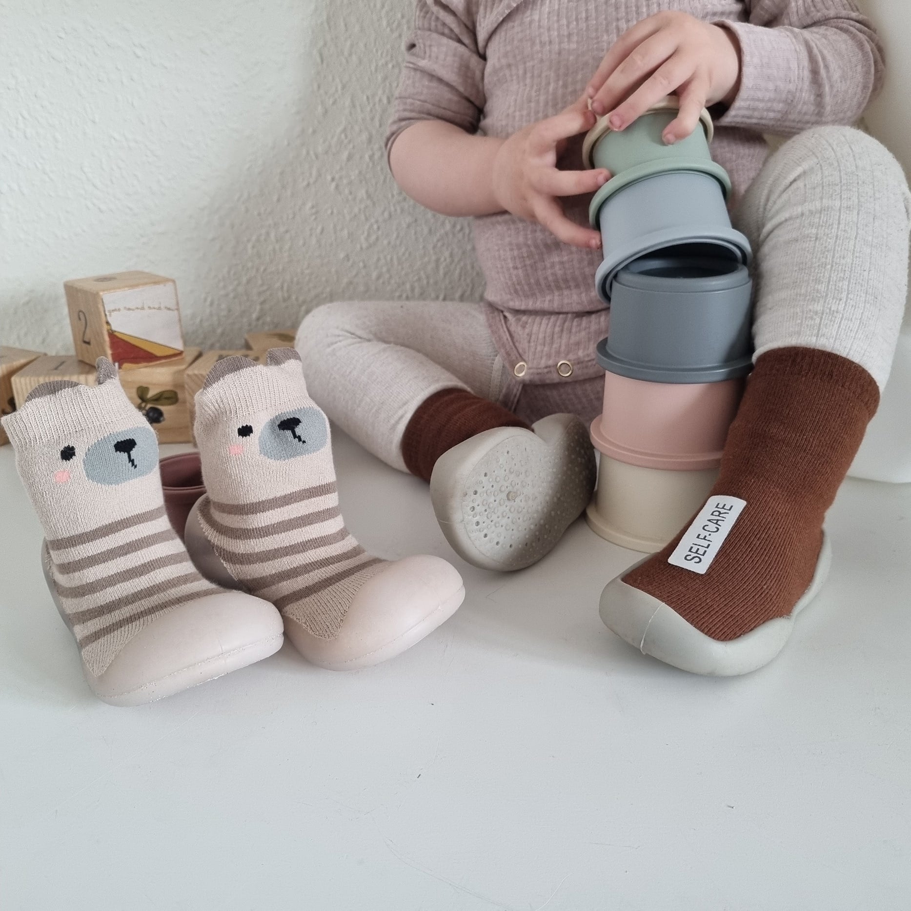 Bløde, skridsikre sko-sokker til travle småbørn!